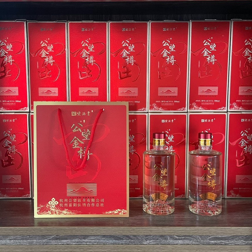 “公望金樽 ”是我公司的注册商标,产品选用杭州东洲岛优质葡萄,应用古法工艺精酿而成。口感具有绵、甜、爽、净,具有绵柔型白酒的典型风格,饮后不易上头,很少有“宿醉”的现象。